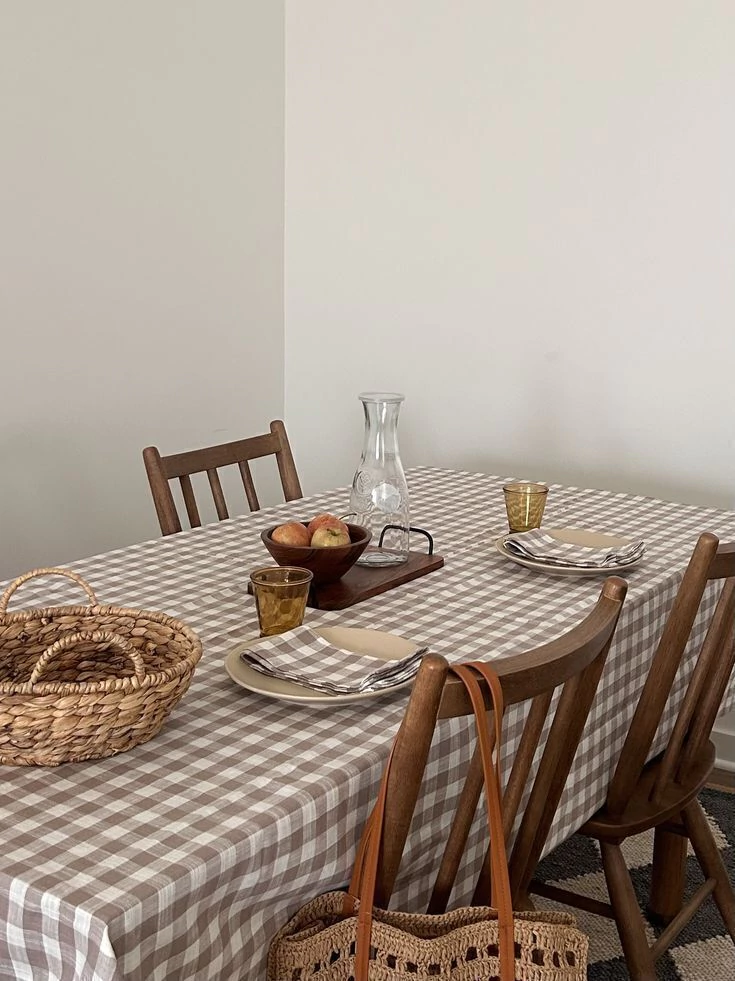 Mantel confeccionado en tela cuadrille.